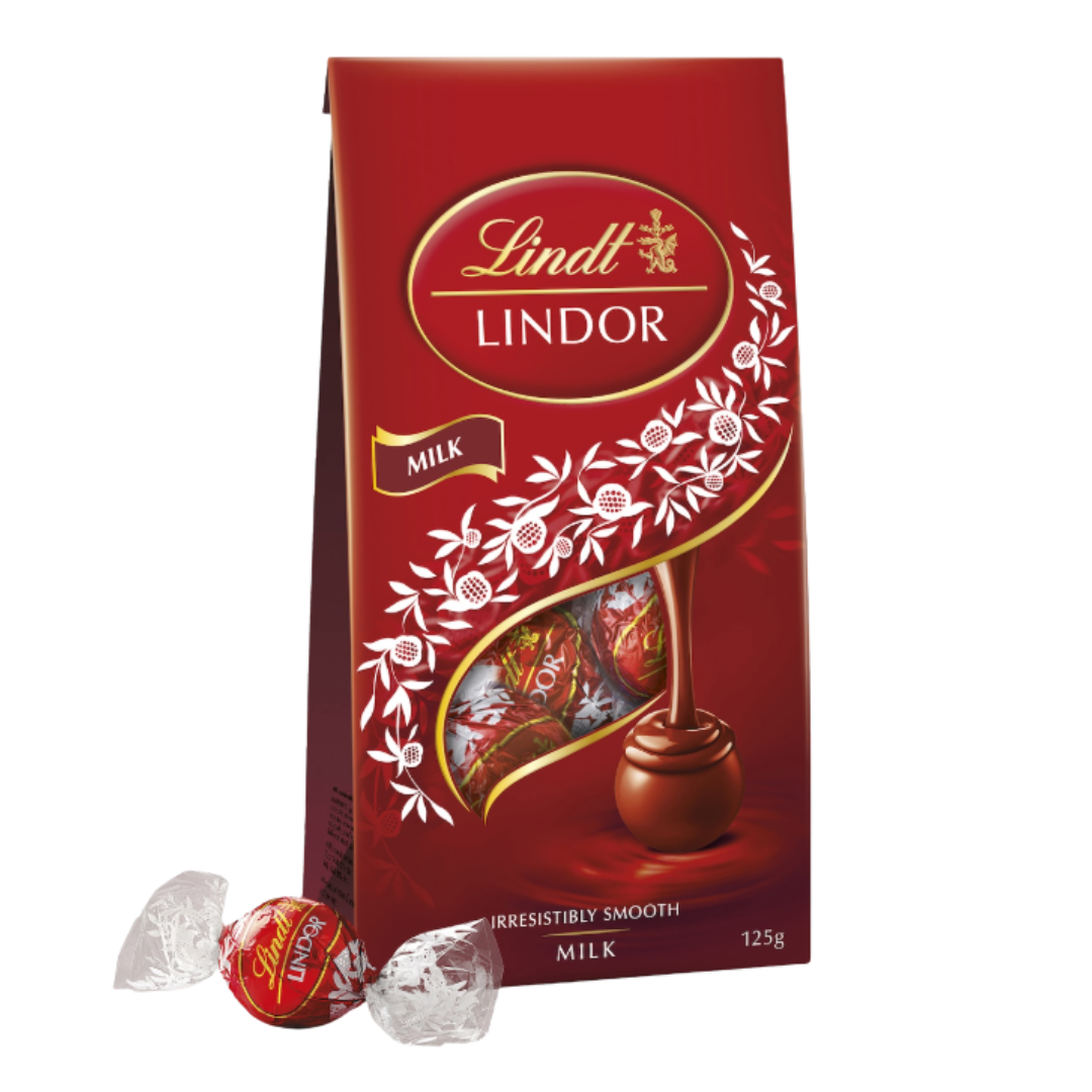 Product form Lindt Lindor • 125g milk choc bag $15.00 Lindt LINDOR Smooth melting milk chocolate truffles 125g bag Read more Read more Add to cart This item is a recurring or deferred purchase. By continuing, I agree to the cancellation policy and authorize you to charge my payment method at the prices, frequency and dates listed on this page until my order is fulfilled or I cancel, if permitted. Share with your friends Share Deel X Messenger Email Description Lindt LINDOR Smooth melting milk chocolate truffles 125g bag